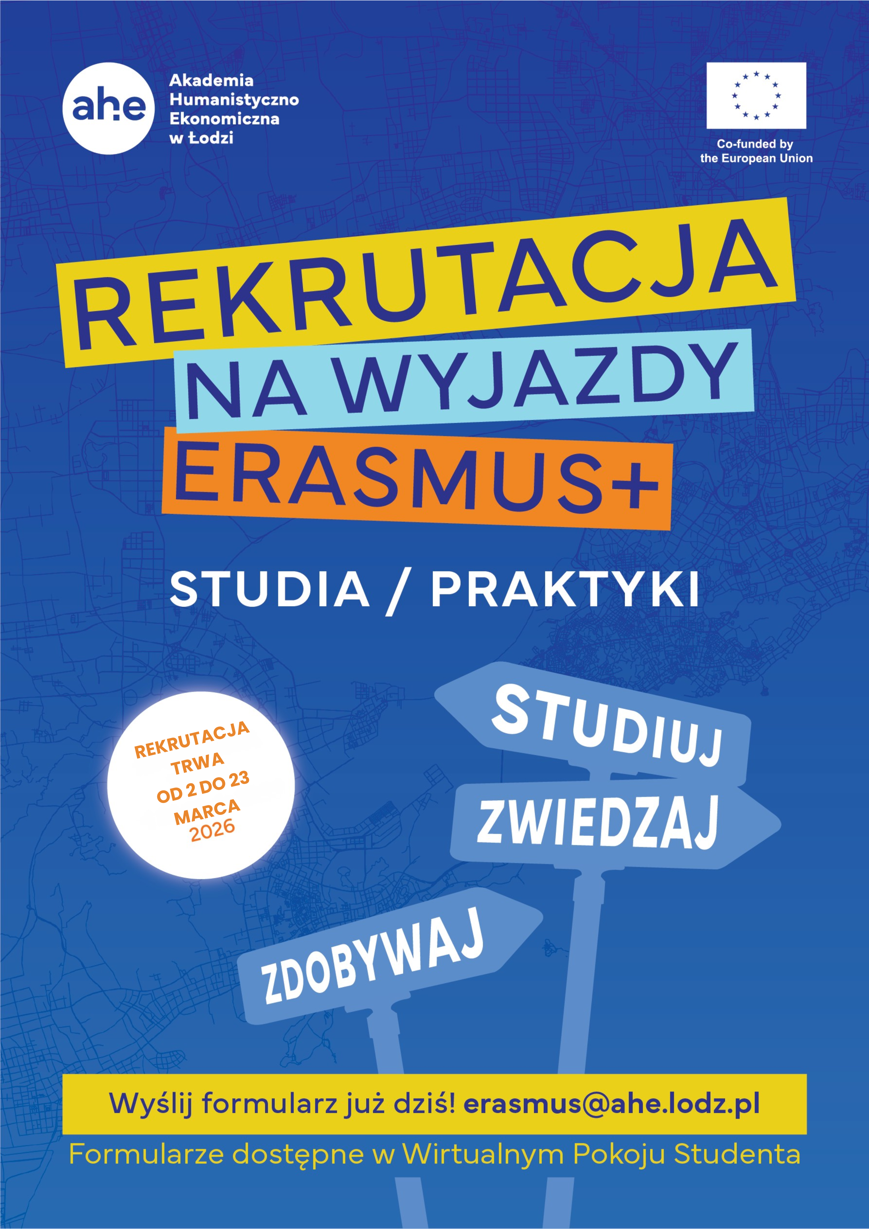 Rozpoczynamy rekrutację na długoterminowe wyjazdy w ramach programu Erasmus+ na rok akademicki 2026/2027!